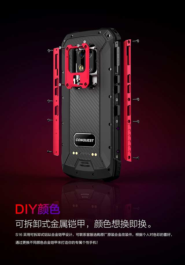 一定会吸引无数目光,好酷炫的手机!!!品味卓然的你,一定不想告诉他,这是通过美国军标防护认证的军工级三防手机CONQUEST S16。