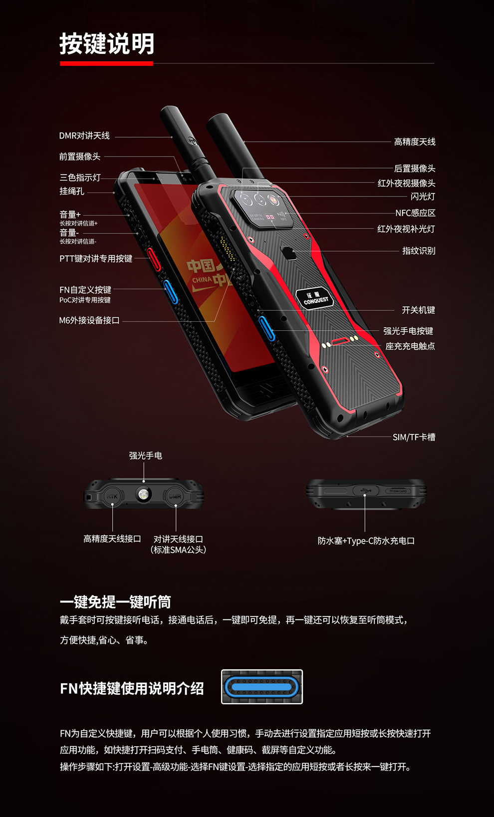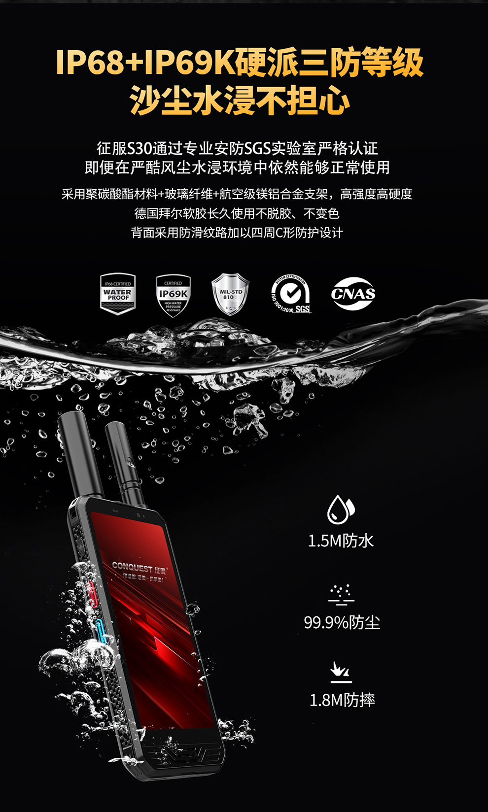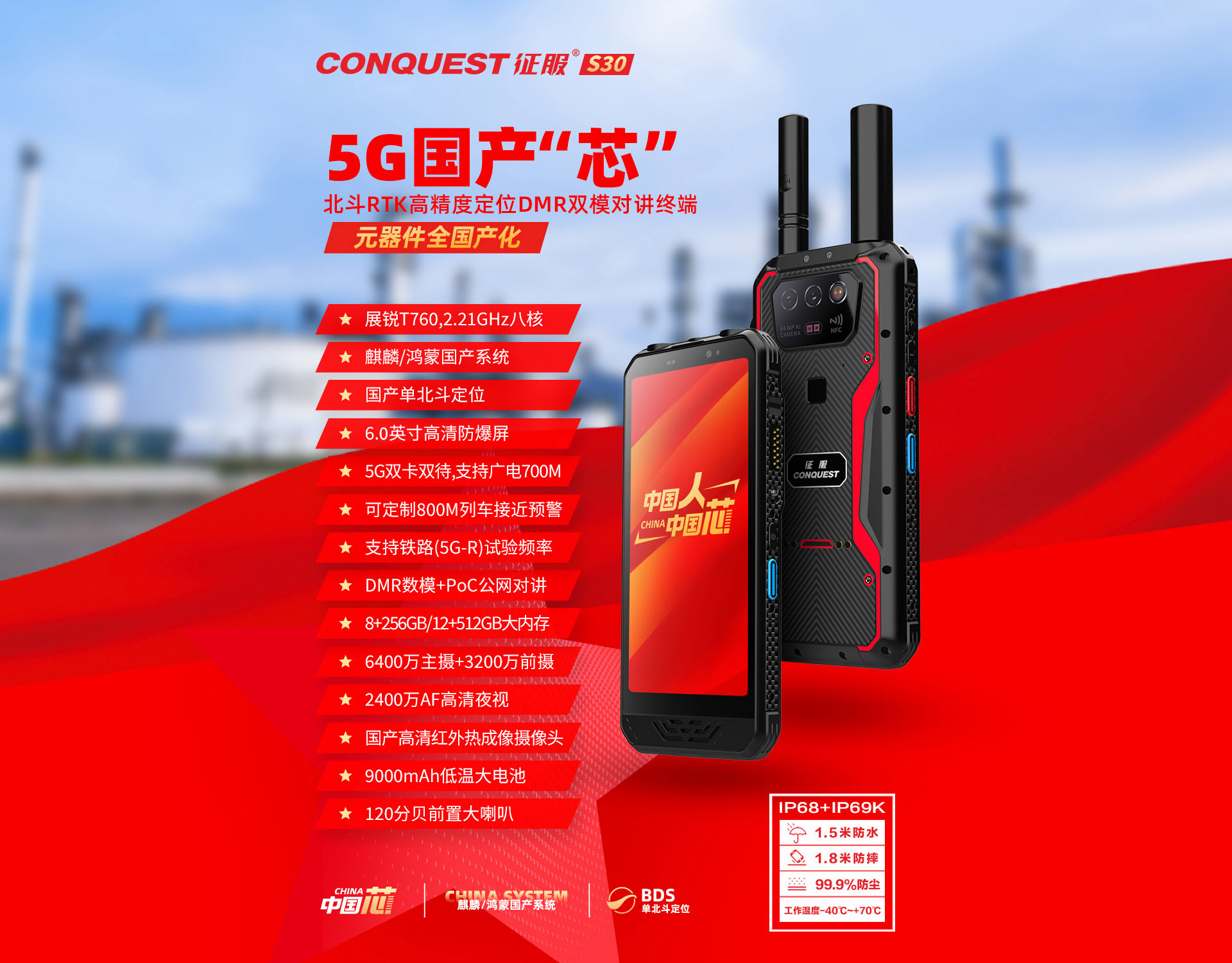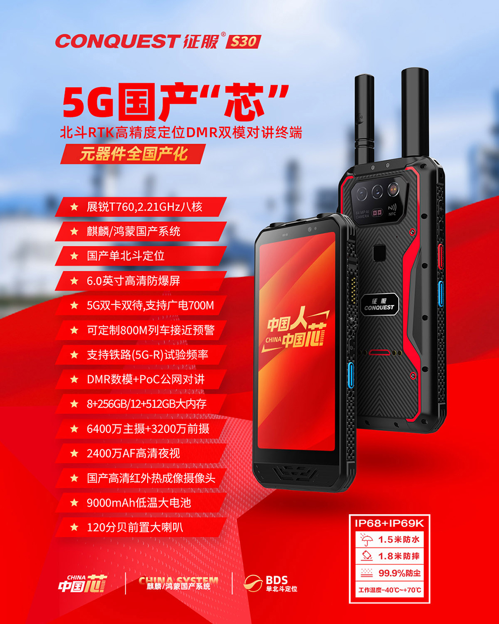 CONQUEST征服S30 5G国产芯+国产系统+单北斗高精度定位DMR双模对讲防爆终端