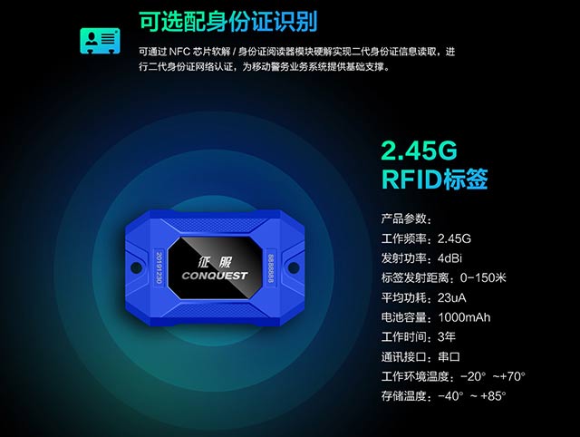 CONQUEST S18物联网三防手机专为远距及多标签读取应用设计,采用高性能Impinj方案,自主研发高性能模块和天线,具有出色的灵敏度和稳定性。读取速度快,距离远并可调节,多标签识别能力强。可应用于生产制造追溯、库房出入库、固定资产管理、电力巡检等应用场景。