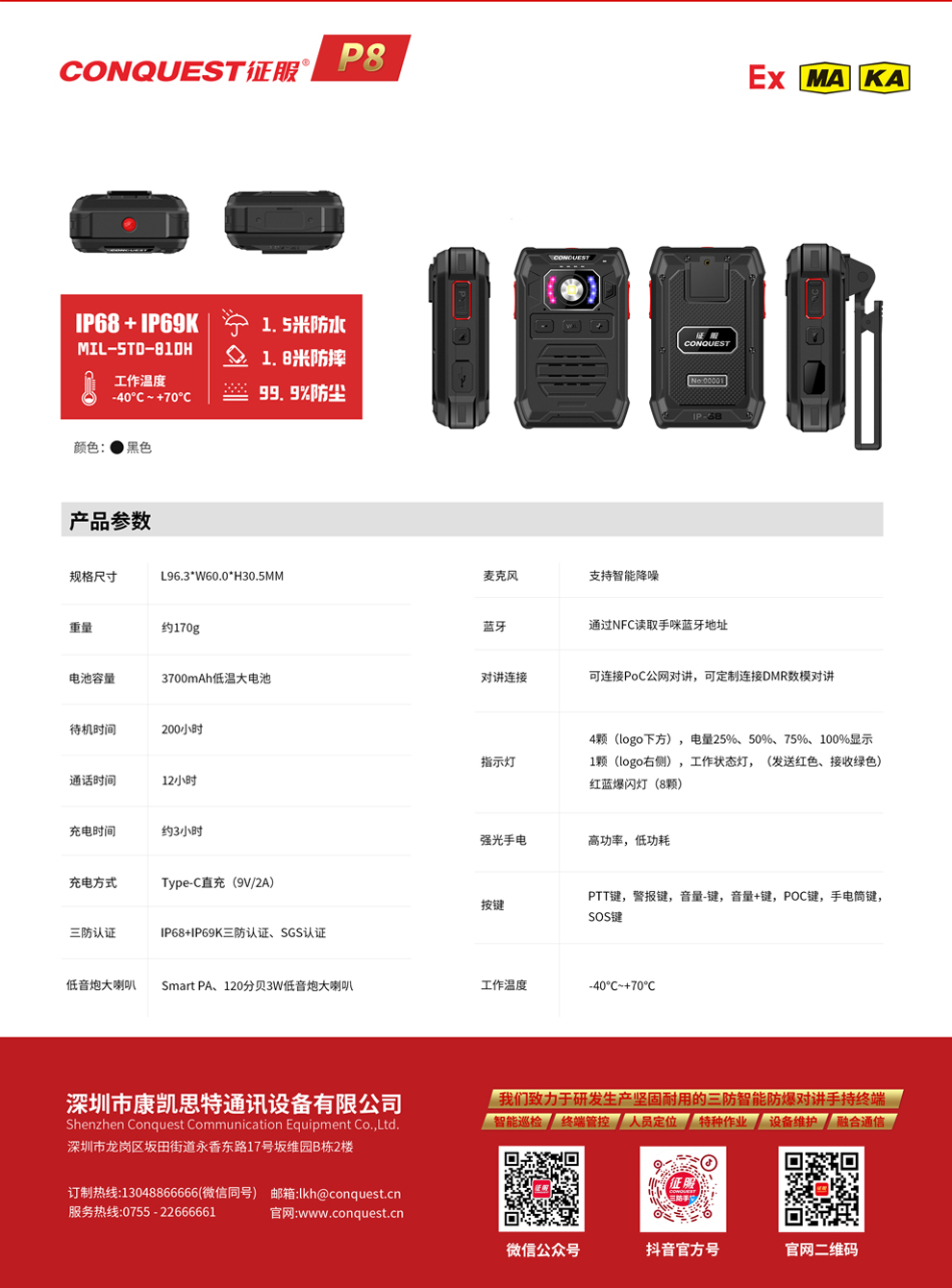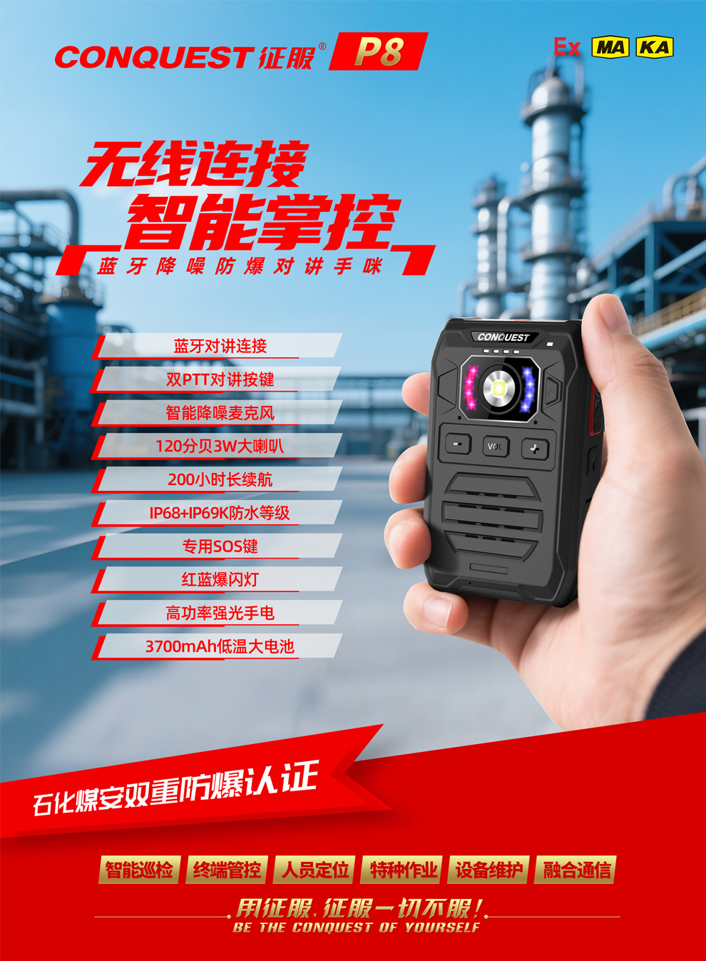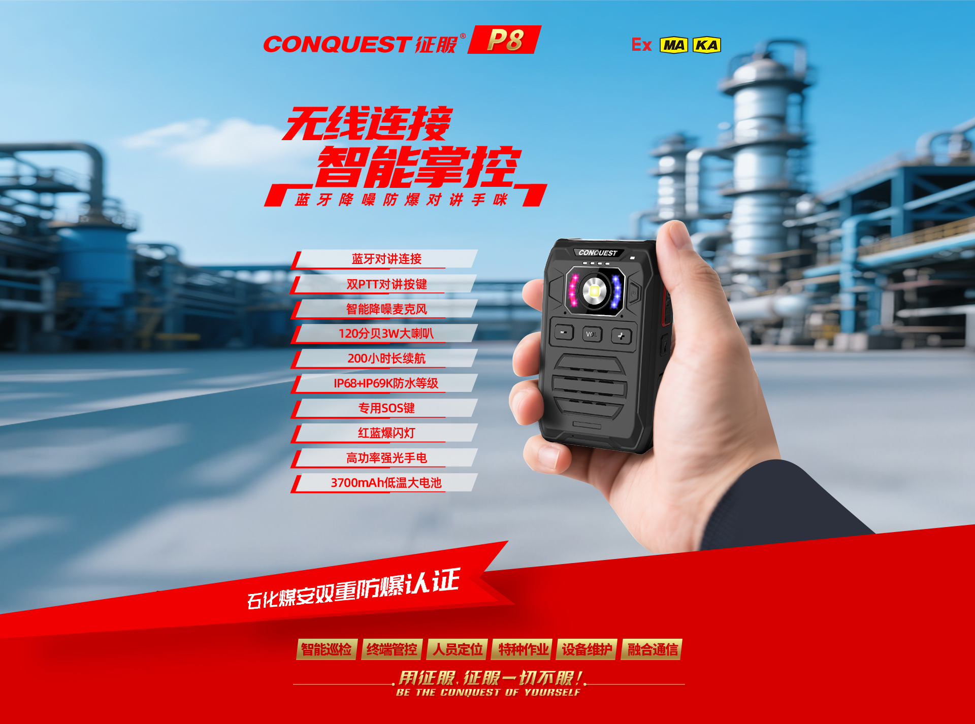 CONQUEST征服P8无线蓝牙降噪防爆对讲手咪!源头厂家